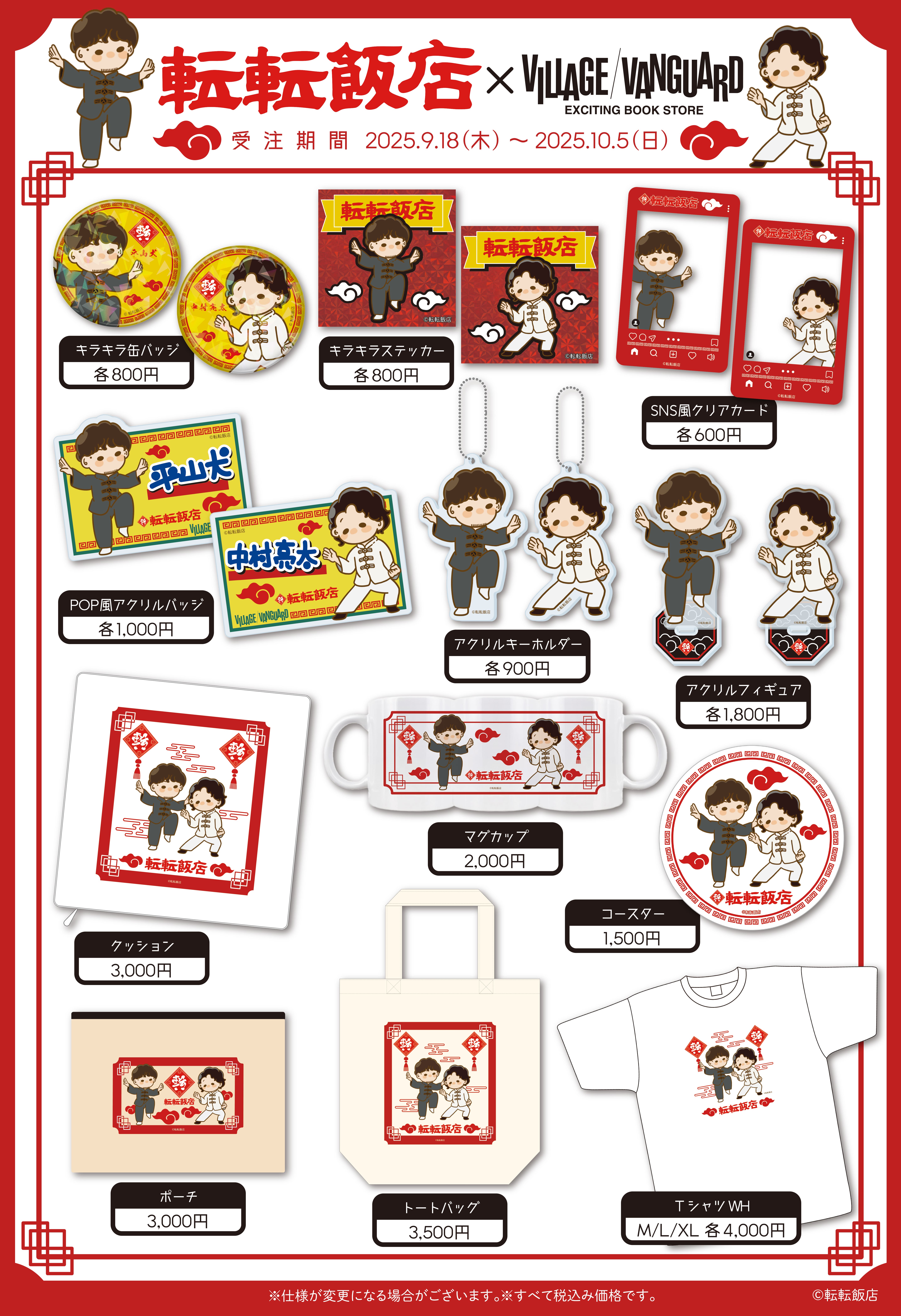 【転転飯店×ヴィレッジヴァンガード】コラボグッズ受注決定!!