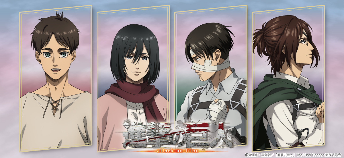 TVアニメ『進撃の巨人』より、「EMOTIONAL WIND」新商品が登場! エレン、ミカサ、リヴァイ、ハンジたちが、風を感じさせる繊細なタッチで描かれた、 描き下ろし「EMOTIONAL WIND」は、ファン必見のアートシリーズです。 お見逃しなく!