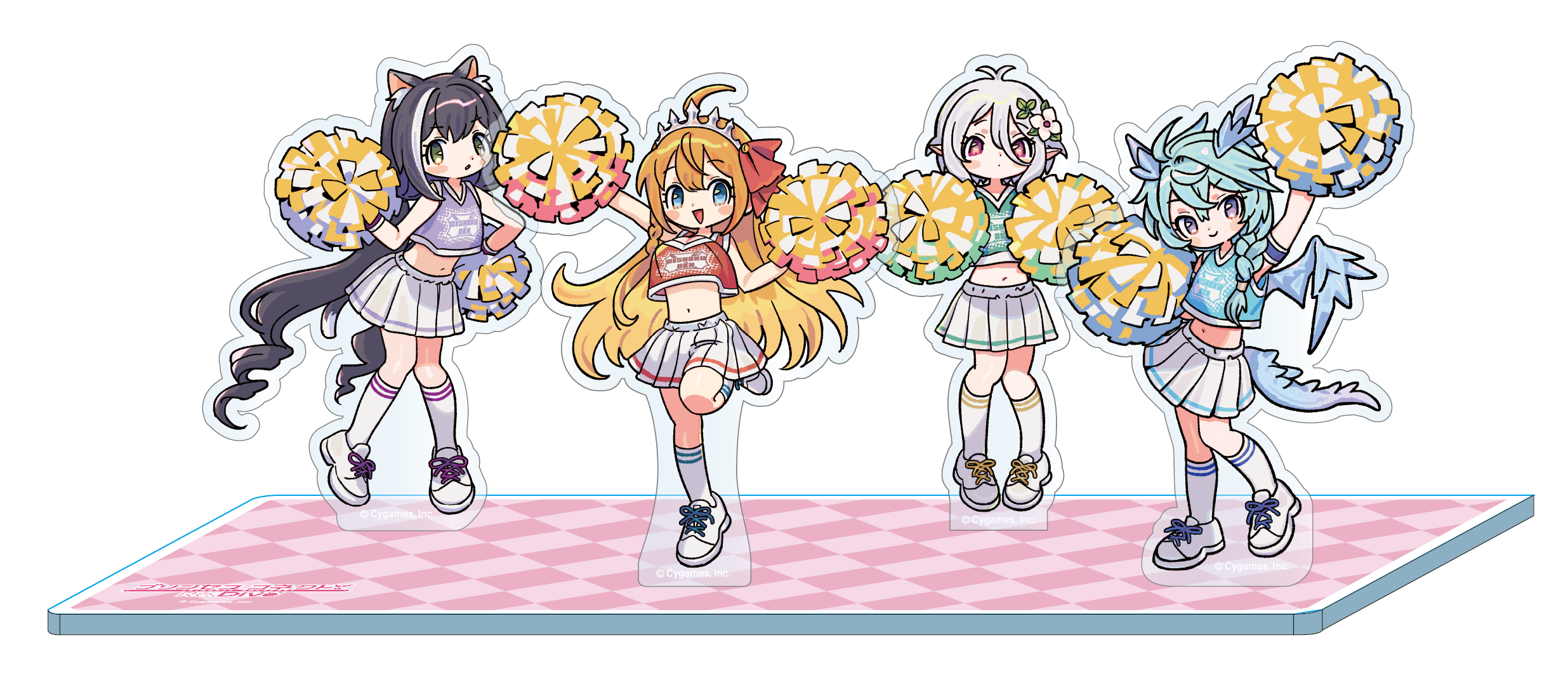 このスペシャルコラボのために描き起こされたチアガール衣装の【美食殿】の4人が各種グッズになって登場です!