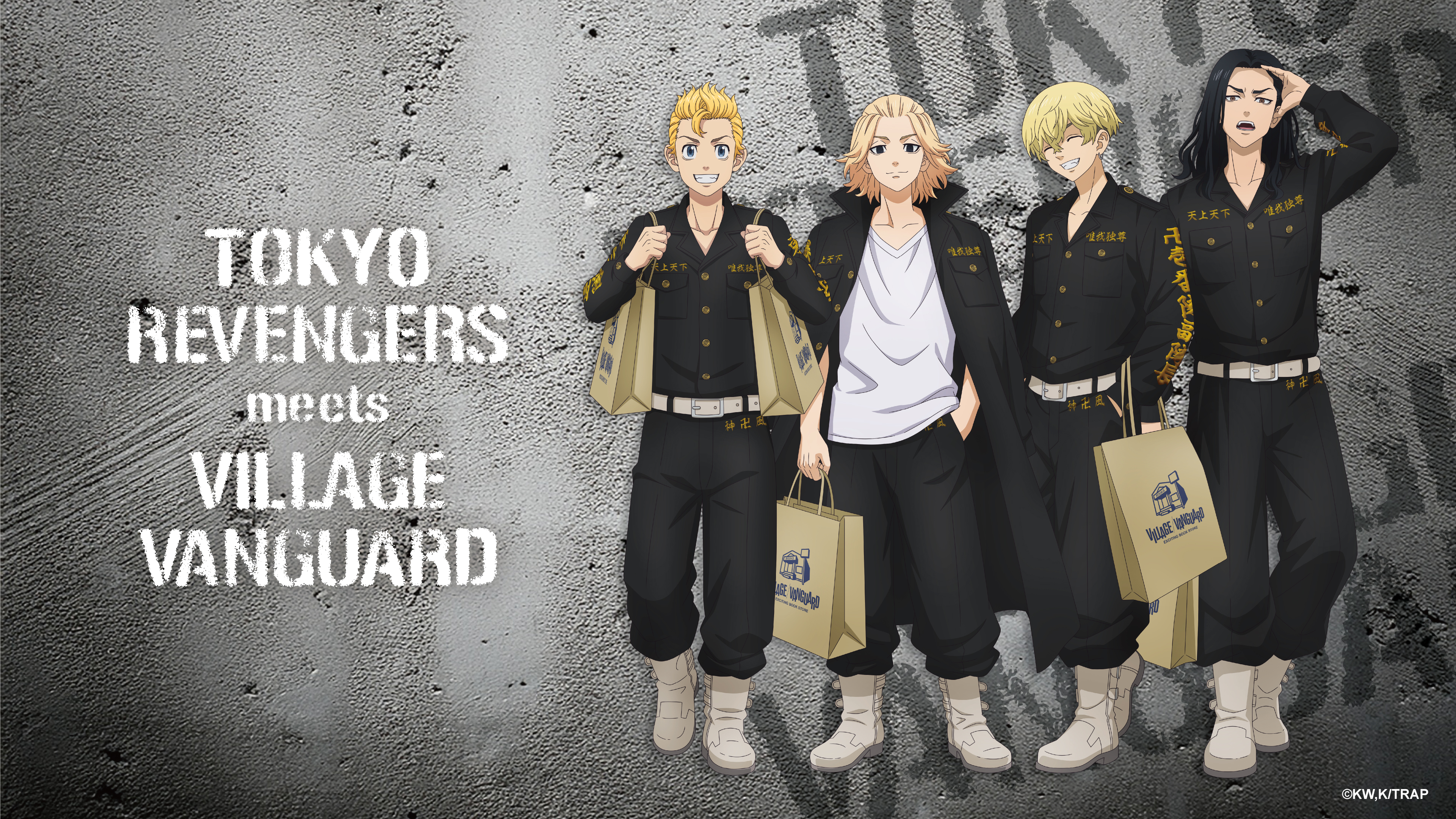 花垣武道・佐野万次郎・松野千冬・場地圭介が ヴィレッジヴァンガードで買い物をしたら…。 そんなシーンを描きおろしイラストに仕上げました。 東京リベンジャーズ公式X https://x.com/anime_toman