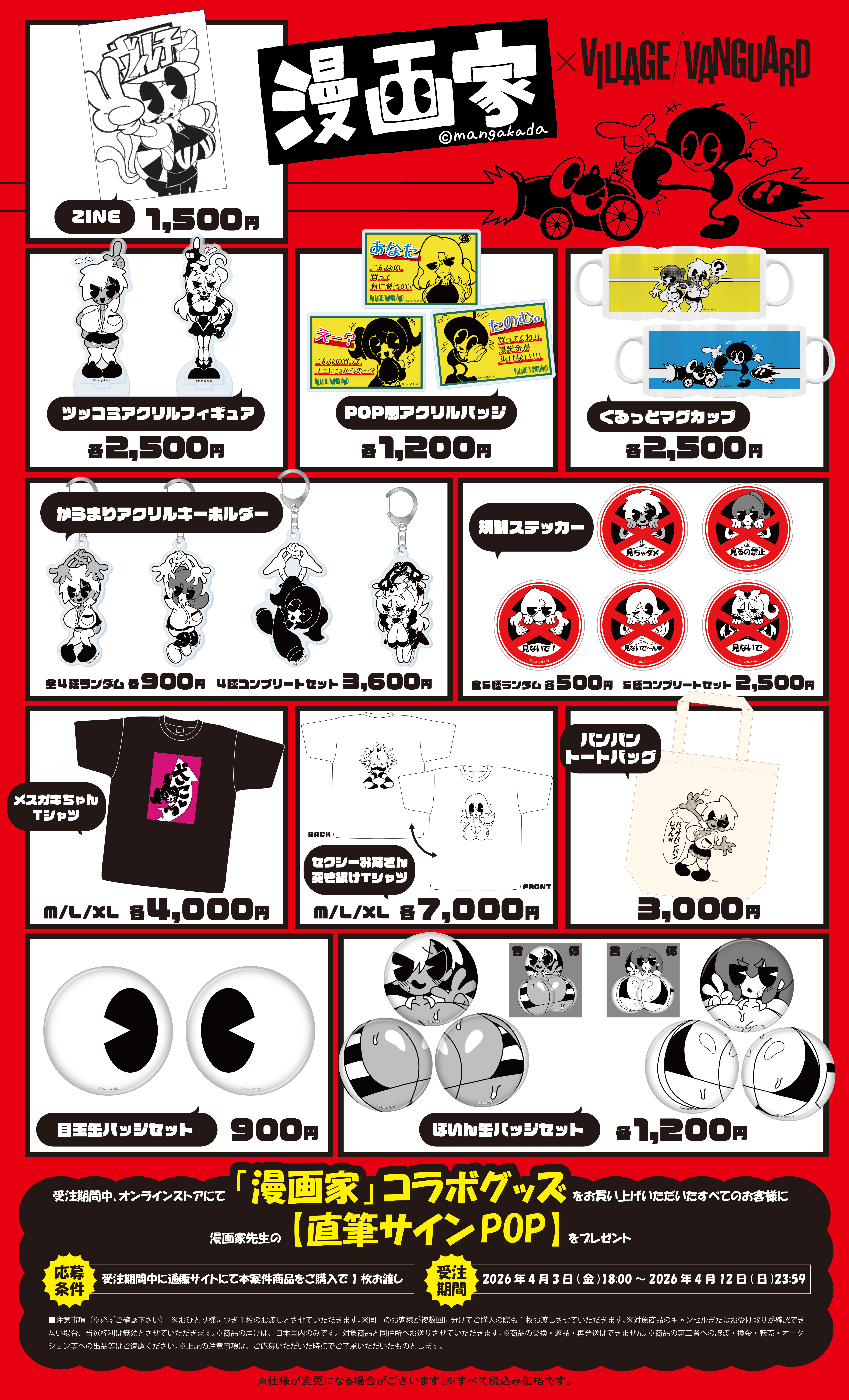 受注期間中「漫画家×ヴィレッジヴァンガード」コラボグッズをご購入いただいたお客様全員に、