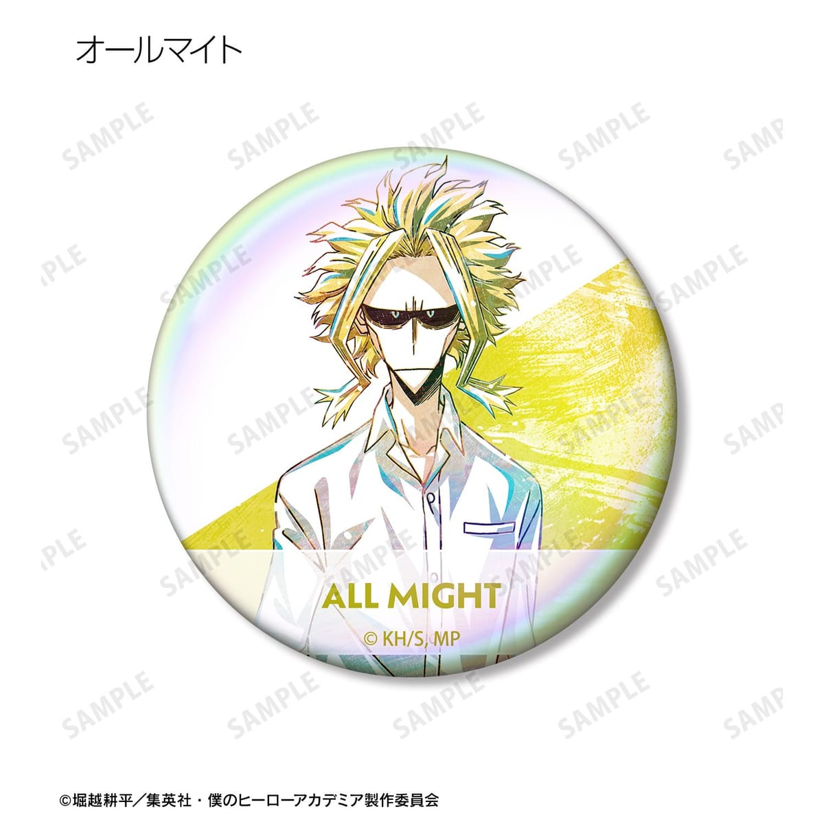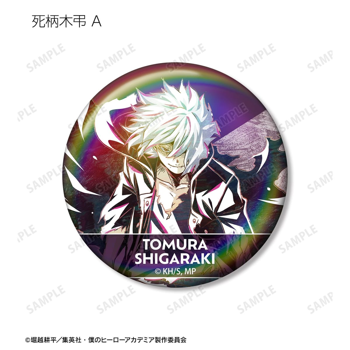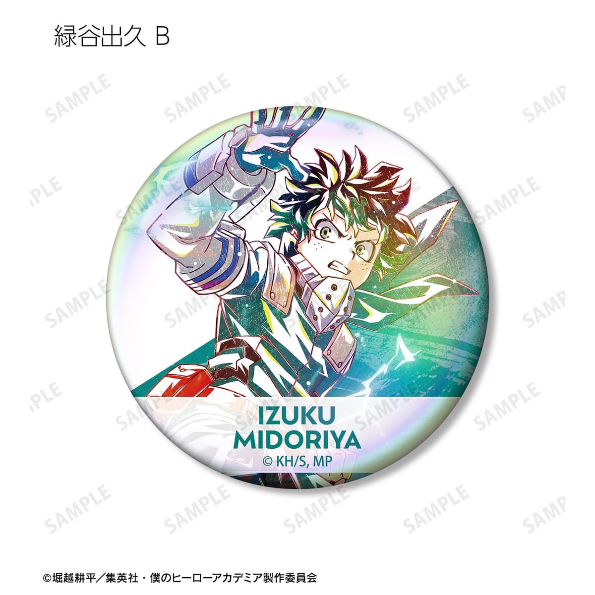緑谷出久、蛙吹梅雨、物間寧人、拳藤一佳、通形ミリオ、オールマイト、リューキュウ、死柄木弔、リ・デストロのビジュアルを新たなタッチで魅力的に表現し、オーロラ加工を施した缶バッジに仕上げました。