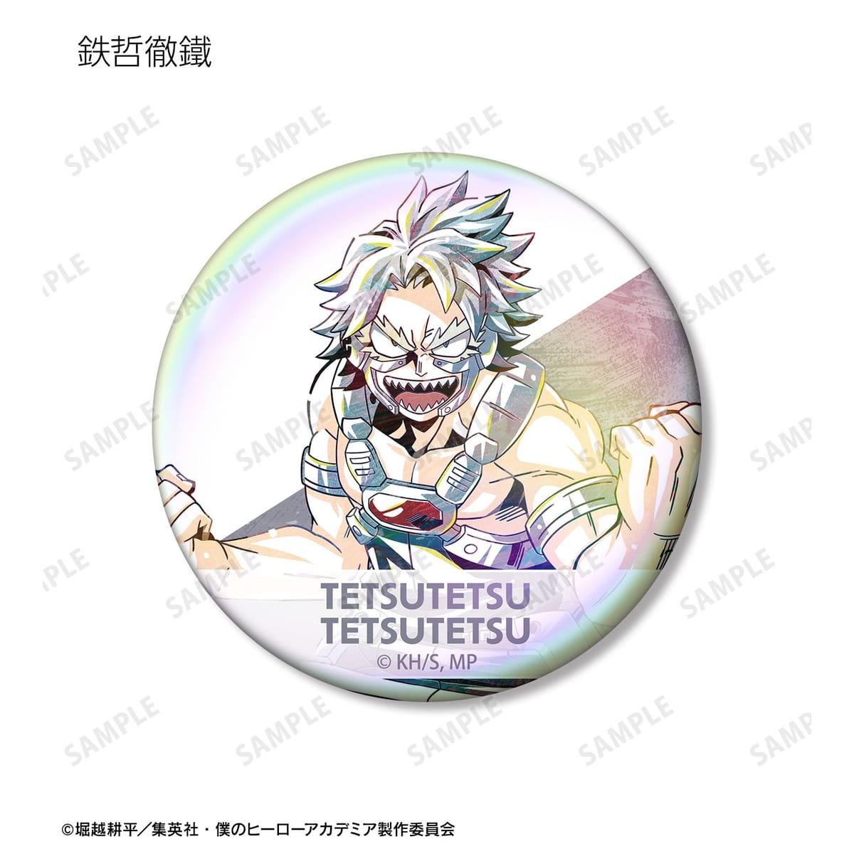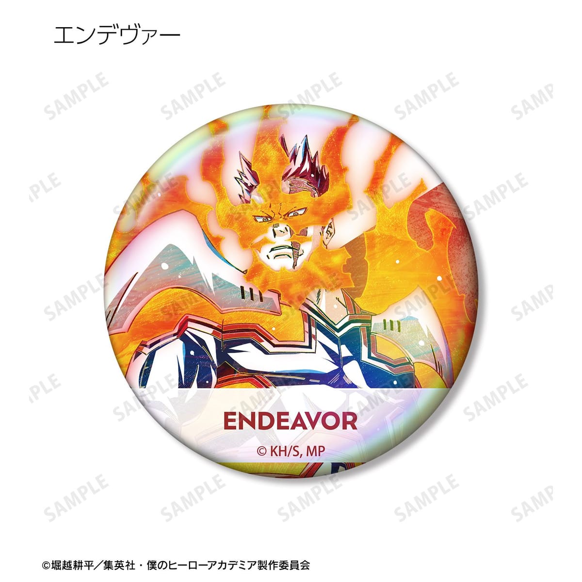轟焦凍、上鳴電気、鉄哲徹鐵、波動ねじれ、エンデヴァー、Mt.レディ、オール・フォー・ワン、荼毘、スピナー、スケプティック、ギガントマキアのビジュアルを新たなタッチで魅力的に表現し、オーロラ加工を施した缶バッジに仕上げました。