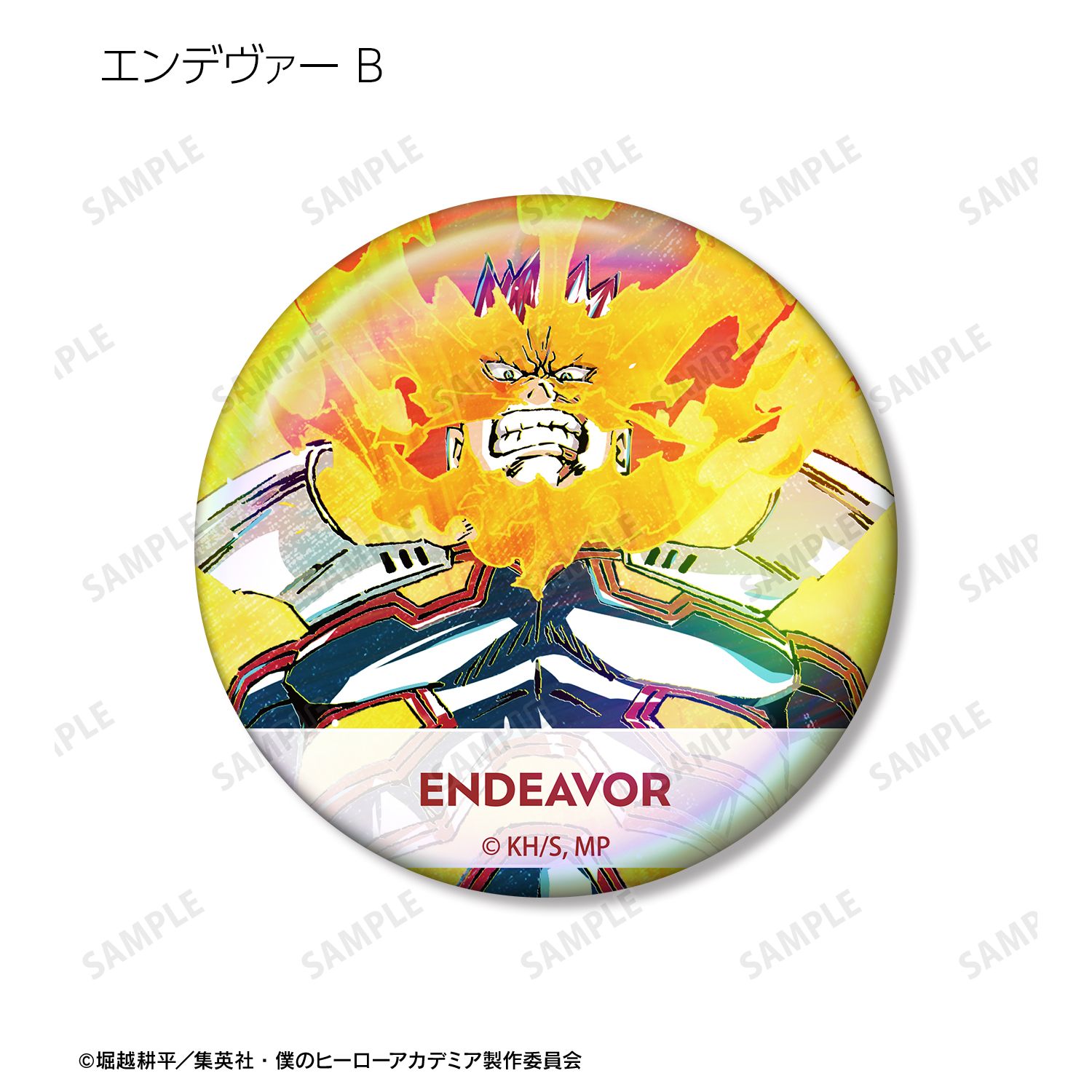 轟焦凍、切島鋭児郎、八百万百、芦戸三奈、瀬呂範太、鉄哲徹鐵、心操人使、エンデヴァー、トガヒミコ、トゥワイスのビジュアルを新たなタッチで魅力的に表現し、オーロラ加工を施した缶バッジに仕上げました。