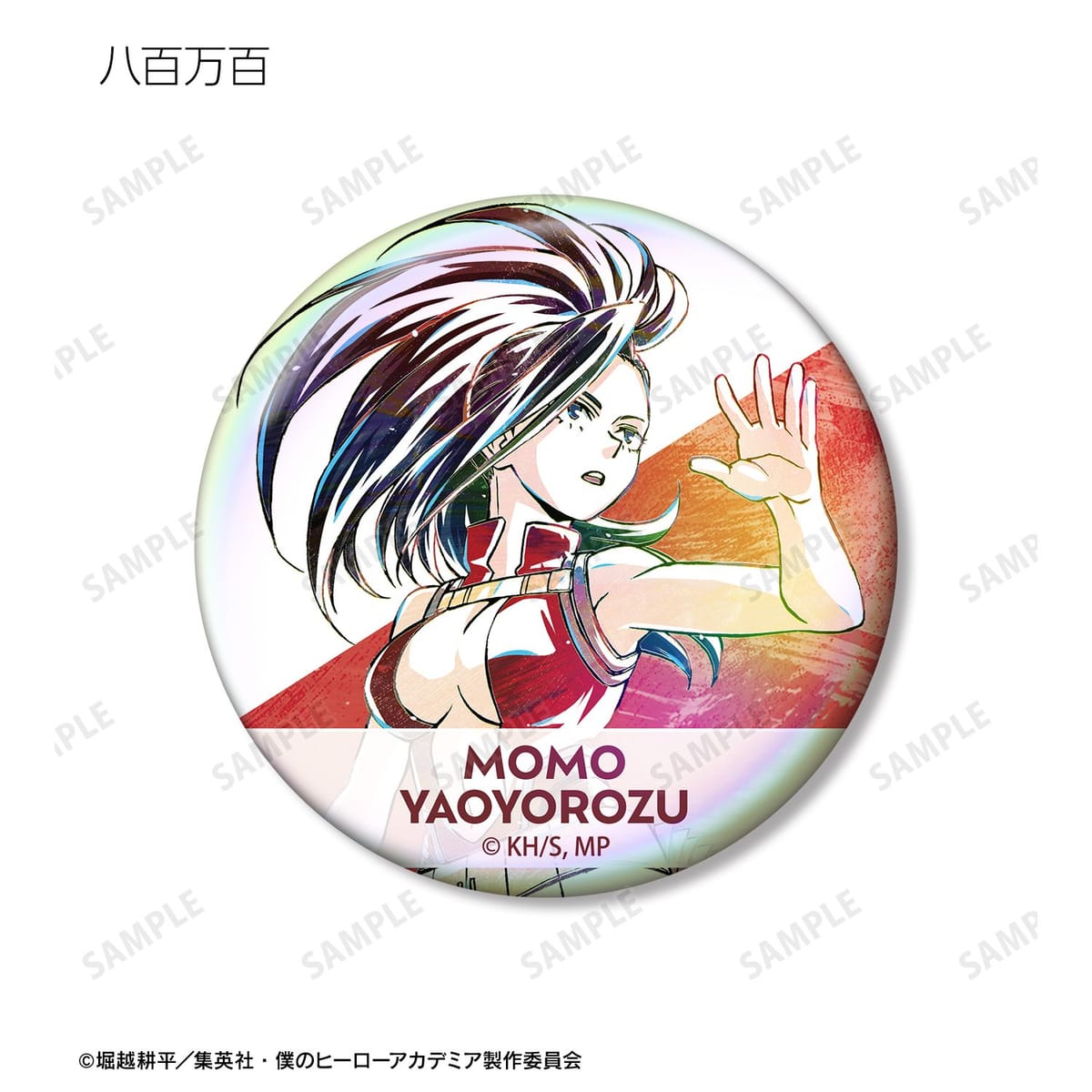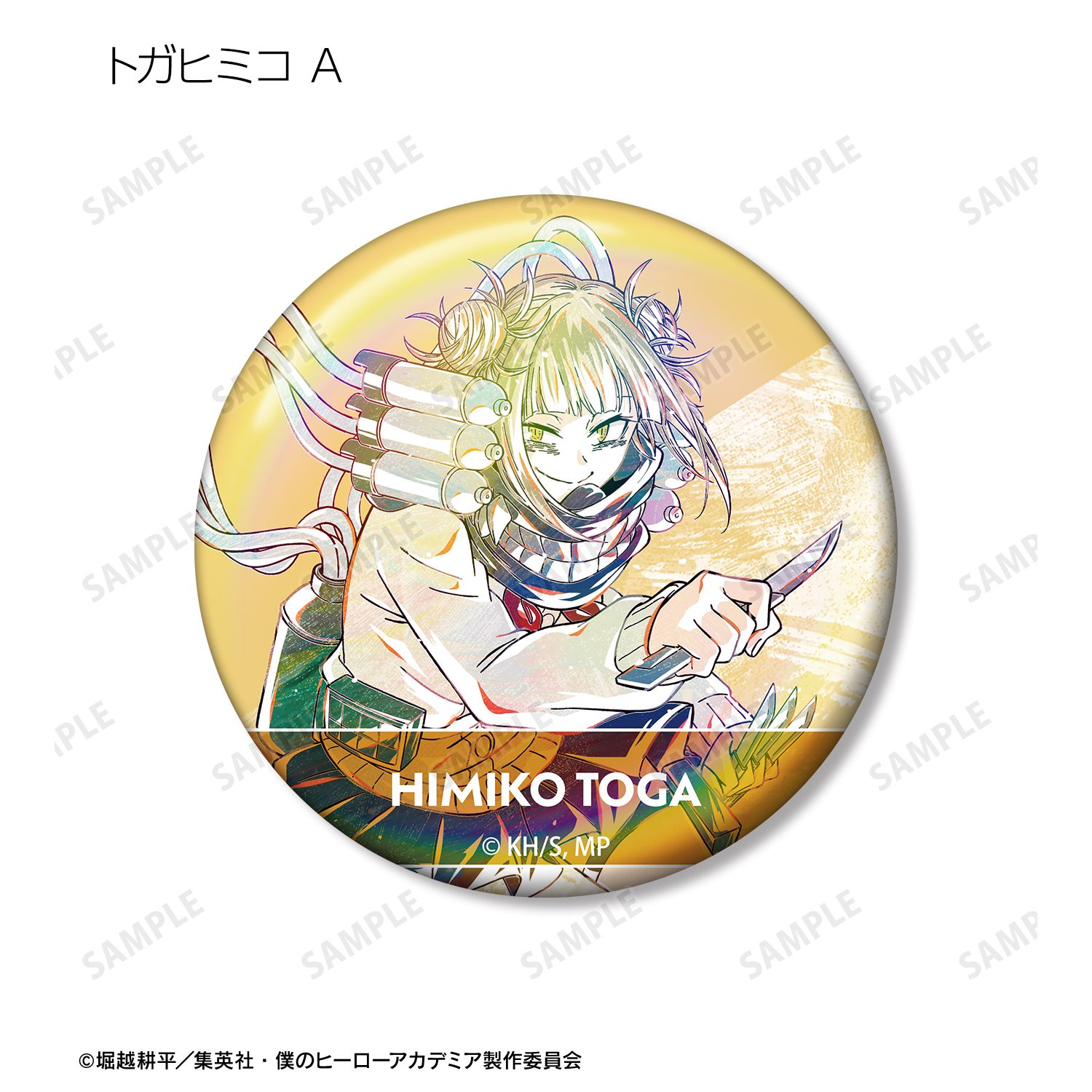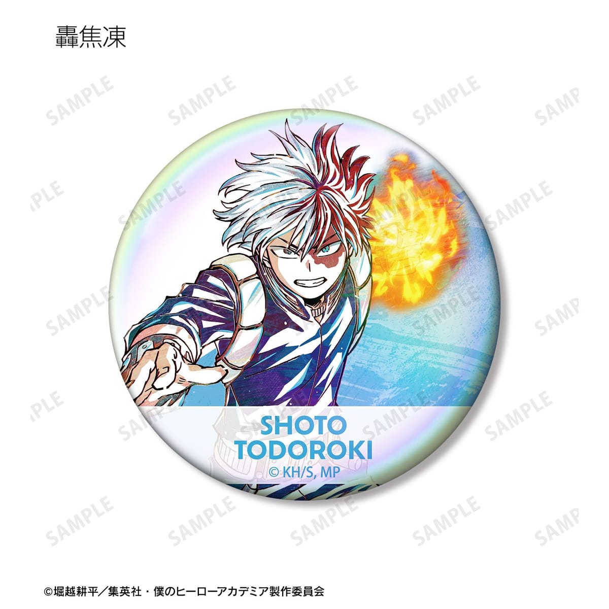 轟焦凍、切島鋭児郎、八百万百、芦戸三奈、瀬呂範太、鉄哲徹鐵、心操人使、エンデヴァー、トガヒミコ、トゥワイスのビジュアルを新たなタッチで魅力的に表現し、オーロラ加工を施した缶バッジに仕上げました。