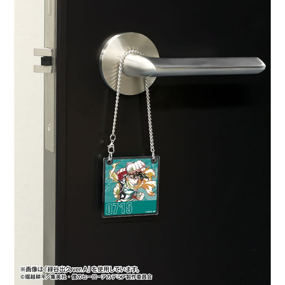 緑谷出久、麗日お茶子、轟焦凍、切島鋭児郎、オールマイト、エンデヴァー、ホークス、死柄木弔、トガヒミコのビジュアルを新たなタッチで魅力的に表現し、アクリルのドアプレート風チャームに仕上げました。20cmのチェーンが付属しております。