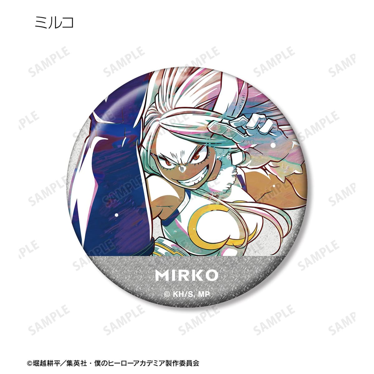 緑谷出久、爆豪勝己、飯田天哉、上鳴電気、耳郎響香、ミルコ、荼毘、レディ・ナガンのビジュアルを新たなタッチで魅力的に表現し、グリッター加工を施した缶バッジに仕上げました。