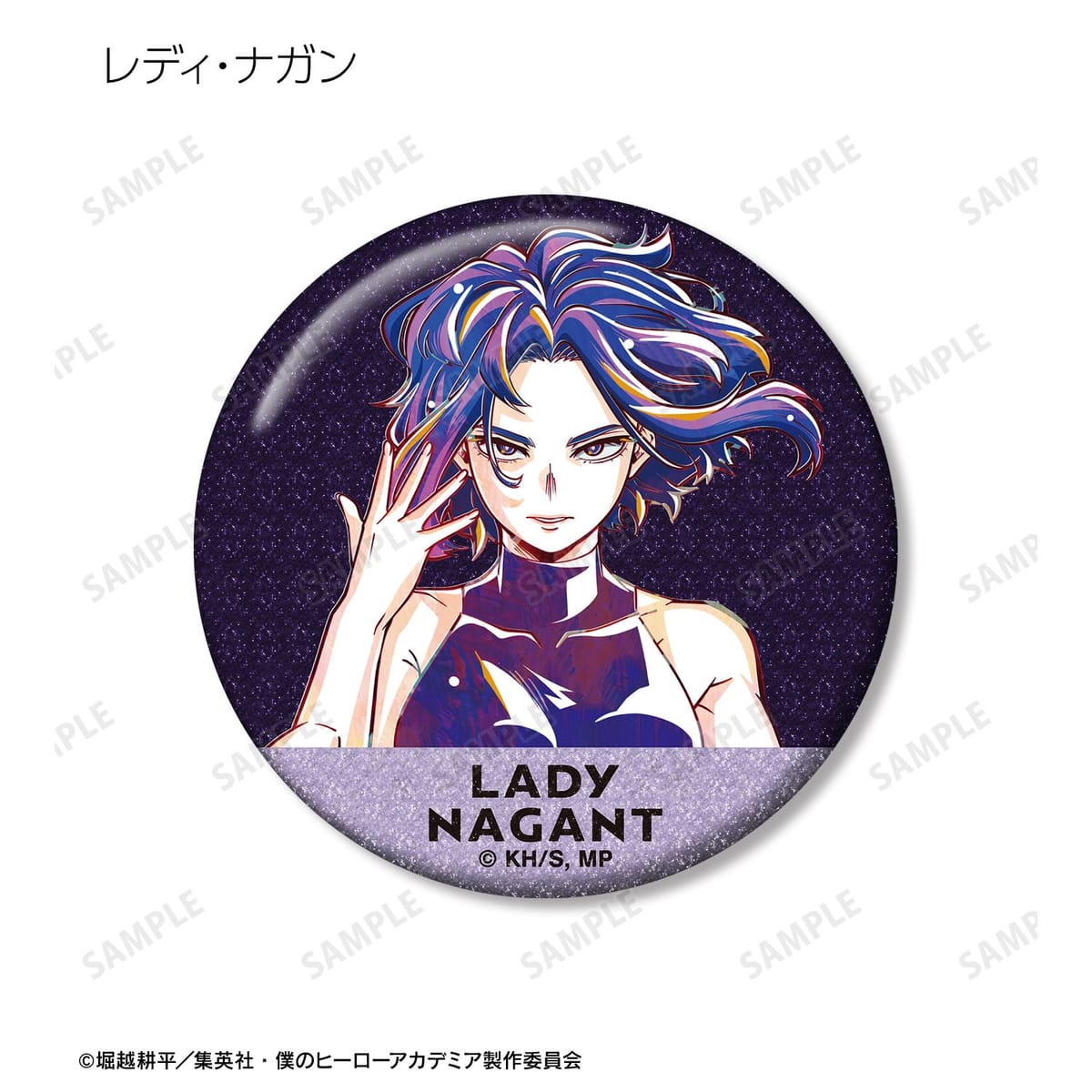 緑谷出久、爆豪勝己、飯田天哉、上鳴電気、耳郎響香、ミルコ、荼毘、レディ・ナガンのビジュアルを新たなタッチで魅力的に表現し、グリッター加工を施した缶バッジに仕上げました。