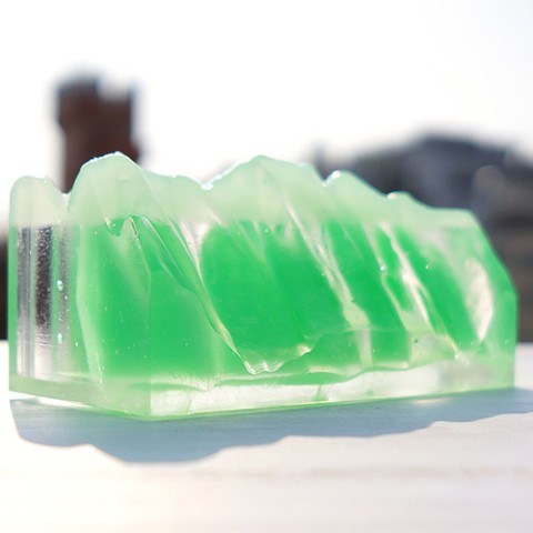“MINE"は山脈の自然な表現する為に1個1個手作りで製作しています。美しく表現するには大量には生産できない製作行程をしていて、例えば残雪を表現した山頂部分全て形の違う表現になっていて手作りでしか表現できません。