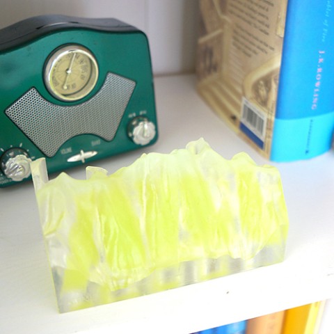 “MINE"は山脈の自然な表現する為に1個1個手作りで製作しています。美しく表現するには大量には生産できない製作行程をしていて、例えば残雪を表現した山頂部分全て形の違う表現になっていて手作りでしか表現できません。