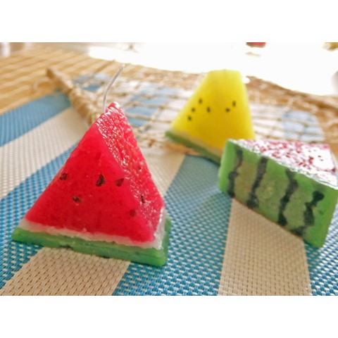 今年の夏、新出荷(?)の「スイカキャンドル」は、手のりサイズのかわいい三角形♪