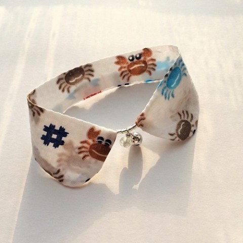 【neko-no-hige】浴衣風ねこちゃんのつけえり(白カニ柄・Mサイズ)【猫】