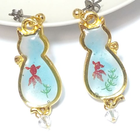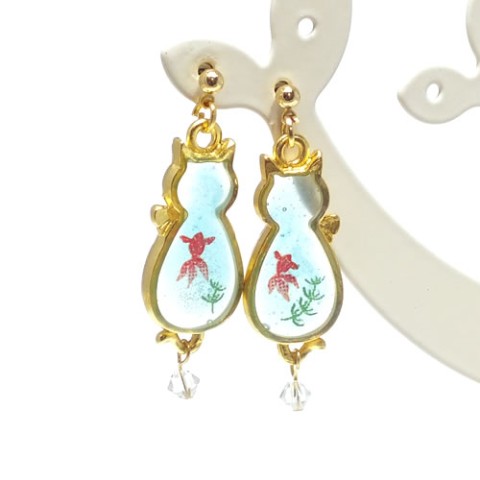にゃんこの中で金魚が泳ぐ夏を感じるピアスです♪