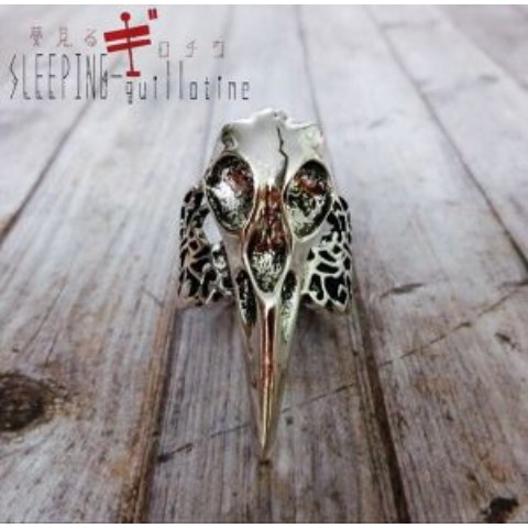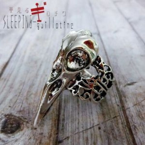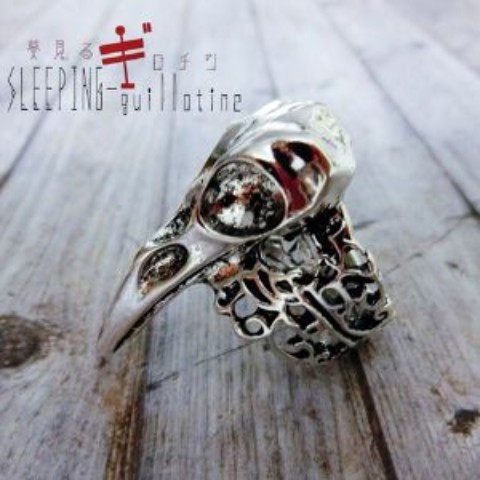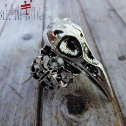 退廃的な雰囲気を纏った カラスの頭蓋骨のリング。パンクすぎず上品な装飾がゴシックさを際立たせます。