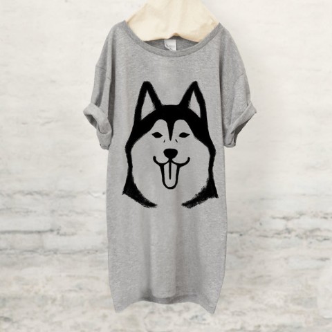 【せいこせんせい】シベリアンハスキー Tシャツ(グレー) Lサイズ
