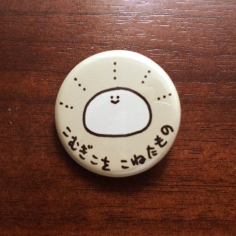 「こむぎこをこねたもの」シリーズの缶バッジ。