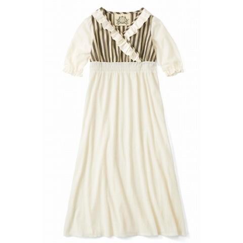 オフホワイトとグレイッシュなブラウンのストライプで、童話『赤ずきん』に登場するオオカミをイメージしたナイティドレス