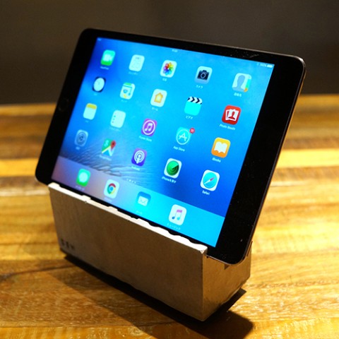 前方に斜めに全長150mmの区切りなしの幅9mmの溝を入れスマホ・タブレットスタンドとして使用していただけます。
