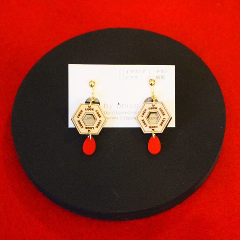 木材やアクリルのおめでたいモチーフが楽しいアクセサリー。コンセプトはシンプル&ユニーク。着けてるだけでいいことありそう!