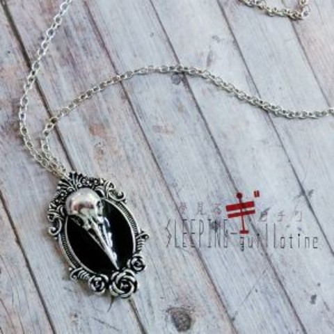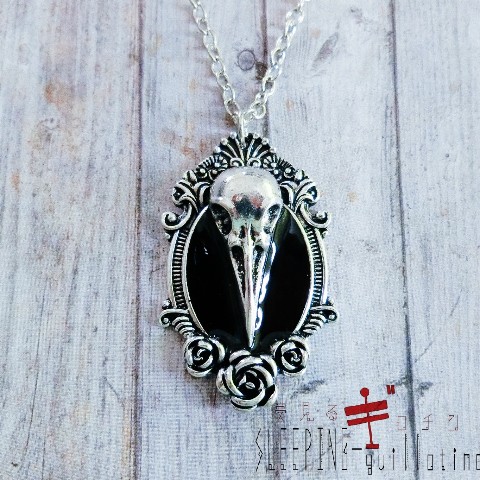 死者を弔う花に飾られた 鴉の頭蓋のネックレス