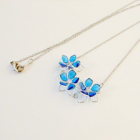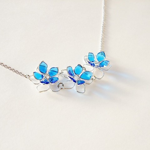 小さな青い華を3つ摘んできたネックレスです。つけ心地はとても軽く、負担がありません。