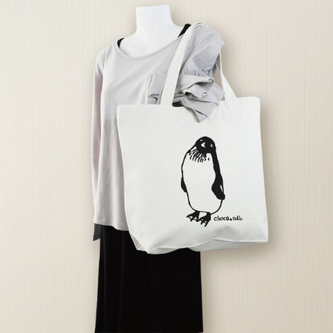 【choco-rail】内ポケット付帆布トートM 無敵ペンギン(ナチュラル)