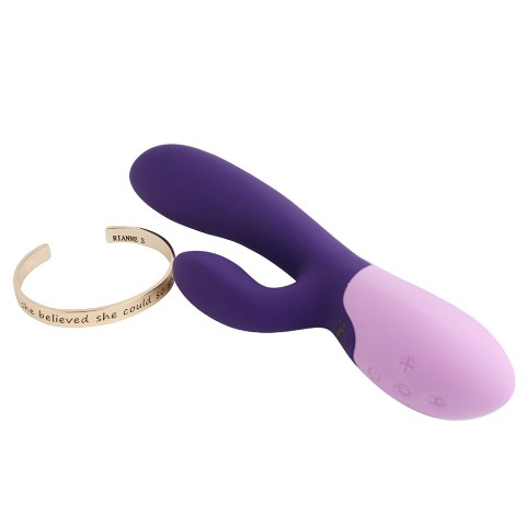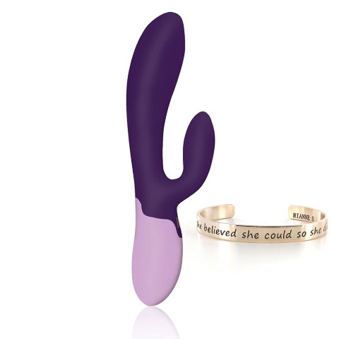 寒い時期にぴったり!ヒ-ティング機能のついたラビットバイブです。「H」ボタンを押せば、3分ほどでバイブレ-タ-の温度が38度?40度になります。本体はシルクのようなすべすべの触り心地と、太すぎず、小さすぎない、ベストなサイズ。クリバイブは驚くほど柔らかく曲がり、体に寄り添うようにフィットします。カラ-リングが美しいパッケ-ジは、まさにRianneSならでは。さらに、女性へのメッセ-ジが書かれたオリジナルデザインのゴ-ルドバングルもセットになっています。ト-イ本体だけでなく、パッケ-ジからノベルティまで、すべてにおいて、使用する女性のことを考えたラビットバイブ。プレゼントにも最適です。