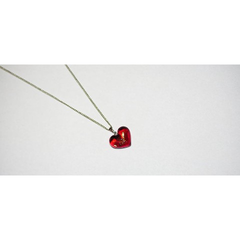 赤く情熱的な色合いのかわいらしいハート型フォルムのペンダントです。内部には美しいラメが煌きます。