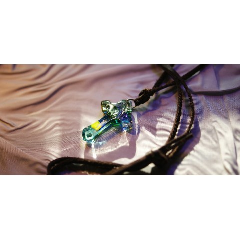 高級輸入素材ガラスを使用して、模様の表現から全ての面を鏡面まで手磨きで仕上げた、ガラスアクセサリー。