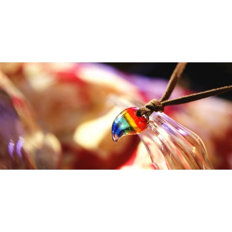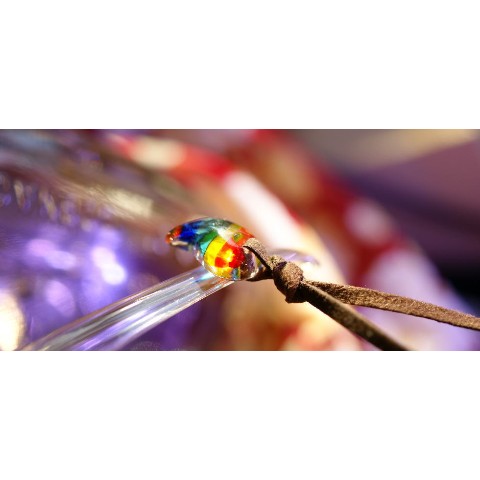 ガラスアクセサリー / コレクション:ネックレス・ペンダント / 130126-121944 / 642 / アメリカンガラス / 約15×11×6mm / 赤系オレンジ系黄色系黄緑系緑系青緑系青系青紫系紫系赤紫系白系・透明 グラデーション加工 / ソフトレザーコード こげ茶 80cm 結ぶタイプ / La forme