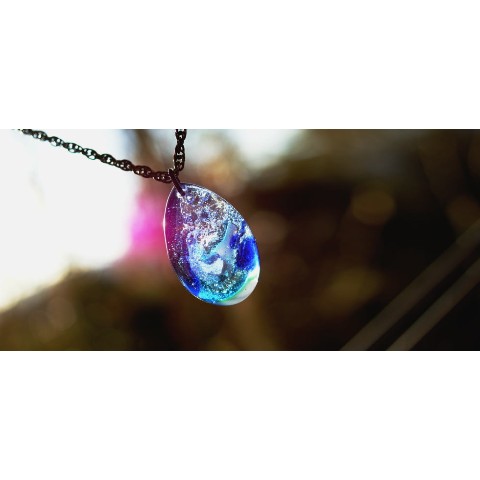 静かなクリスマスの夜、月明かりのもと深々と粉雪が降り積もっている、そんなイメージでお作りしたドロップタイプネックレスです。ブルー系の神秘的な色合いです。一つひとつ手作りのためマーブル模様はそれぞれ少しずつ違います。クリスマスプレゼントにぴったりの作品です。