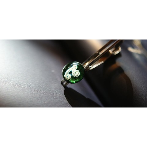 内部に純銀糸でアイビーのような幾何学模様を封入しています。ベースは細かく美しく煌くグリーン系のラメを施しました。神秘的で美しいネクタイピンです。