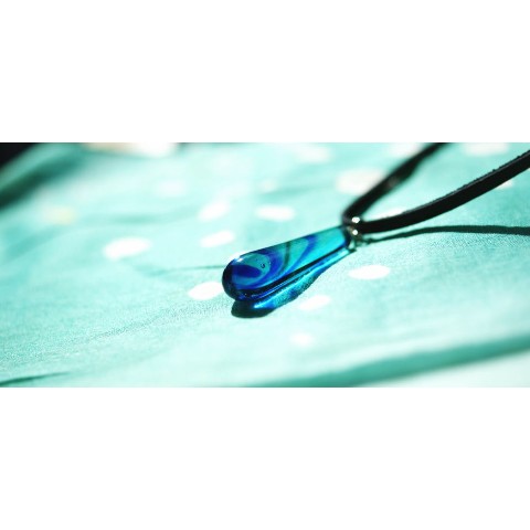 ”のしずくタイプネックレスです。内部には螺旋状の神秘的なマーブル加工を施しました。透明感のある爽やかなイメージしずくペンダントです。