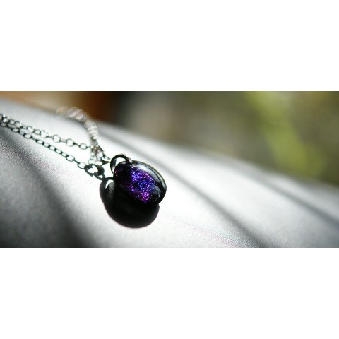 ガラスアクセサリー / コレクション:ネックレス・ペンダント / 121020-163214 / 604 / アメリカンガラス / 約13×11×6mm / 黒系 イリデセント(ラメ)加工 / あずきチェーン シルバー色 40cm / La forme