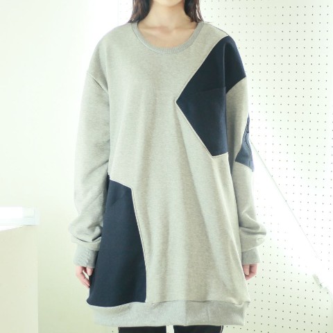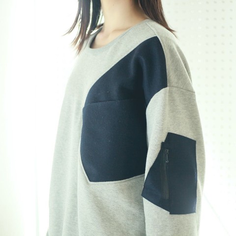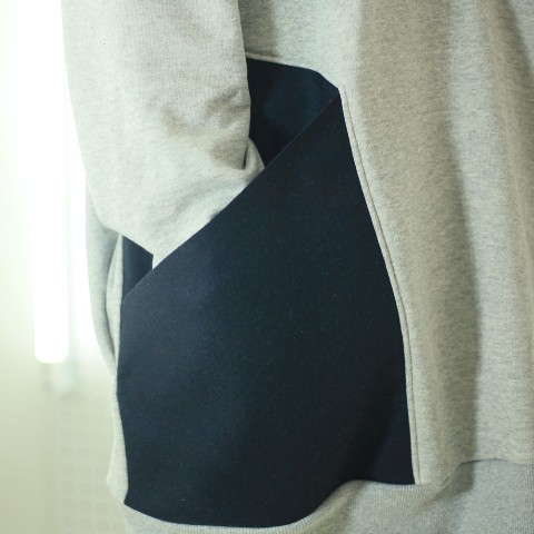 スウェット素材とウールを立体的に切り替えたスウェット 左右脇にポケットがあります。またウール部分もそれぞれポケットとしても使えるので計5ポケットになります。 BIGサイズでユニセックスでおすすめです。