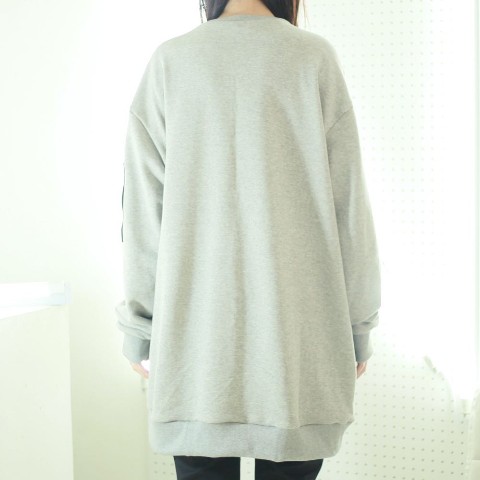 カラー グレー×ネイビー / サイズ FREE 肩幅65cm 身幅64cm 着丈 87cm 袖丈64cm / 素材 スウェット コットン100% / ウール100%