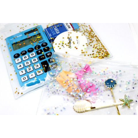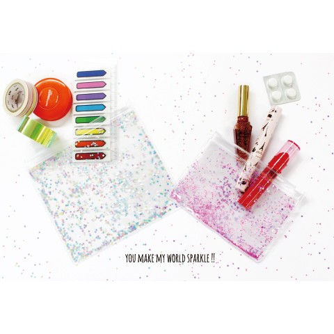 グリッターがサラサラ動いてキラキラするケースです。大小2Pなのでカバンの中の仕分けに便利です。カバンから出したときの輝きが注目の的に。