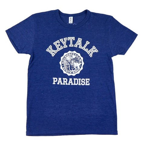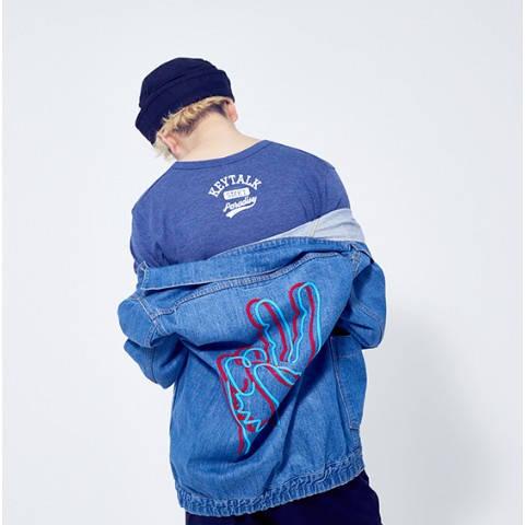 カレッジ風ロゴのTシャツ。