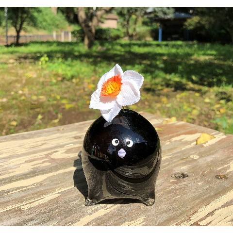 ちょっととぼけた顔のガラスの花瓶。彼らの頭に花を咲かせてあげてください。