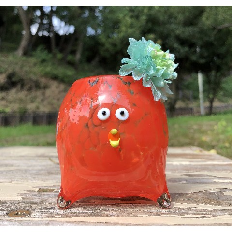 ちょっととぼけた顔のガラスの植物ポット彼らの頭にミニサボテンや多肉植物を植えてあげてください。