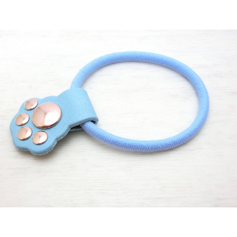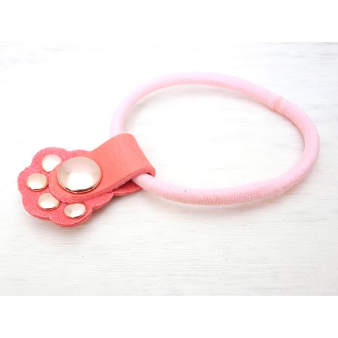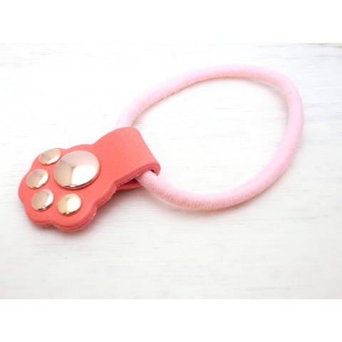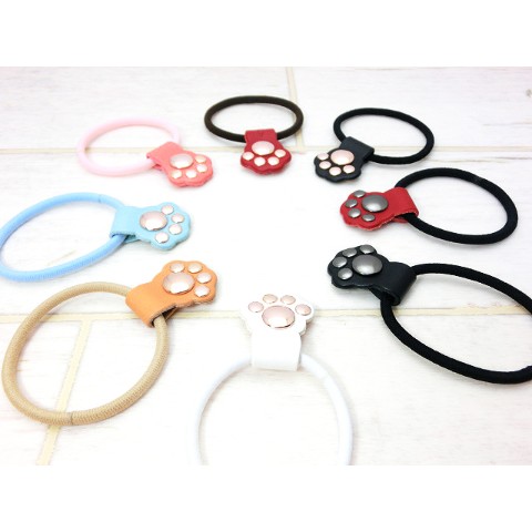 上質な天然牛革とオリジナルメッキ加工の金具を使用した可愛い肉球型のヘアゴムです。髪の毛をまとめると可愛い肉球がちょこんと乗ってるような感じになります。
