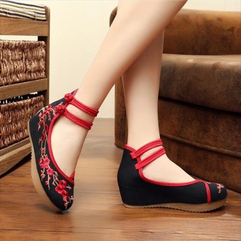 梅中華シューズ Black[23.5cm(37)]【お砂糖少女しゅくれどーる】