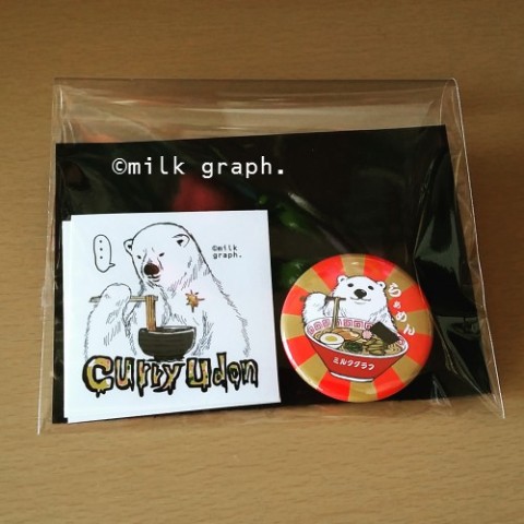 【milk graph.】シロクマ麺 缶バッチ&ステッカー