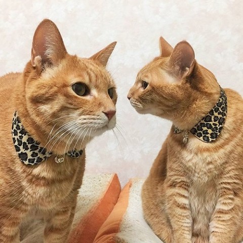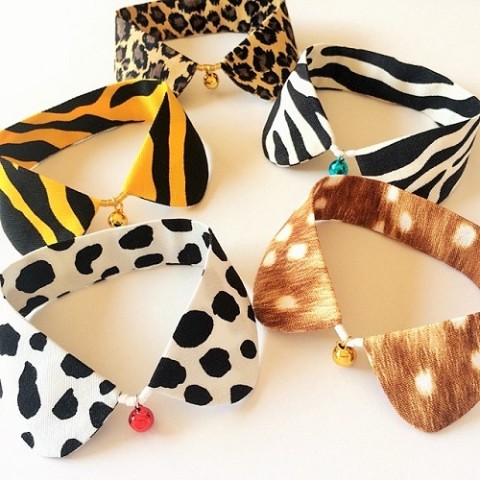 ねこちゃんのつけえりを作っています。時々、飼い主さん用にお揃いアクセ等も作ります。