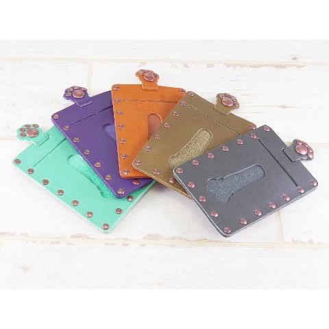 上質な天然牛革とオリジナルメッキ加工の金具を使用した肉球パスケースです。(あずき色肉球シリーズの革は画像よりやや濃い色合いをしています)両面タイプになっているので市販の電波干渉防止シートなどを入れれば2枚のIDカードも使用できます。別売りの肉球リールキーと組み合わせて使用することもできます。付属品:VV限定本革のチャーム付き