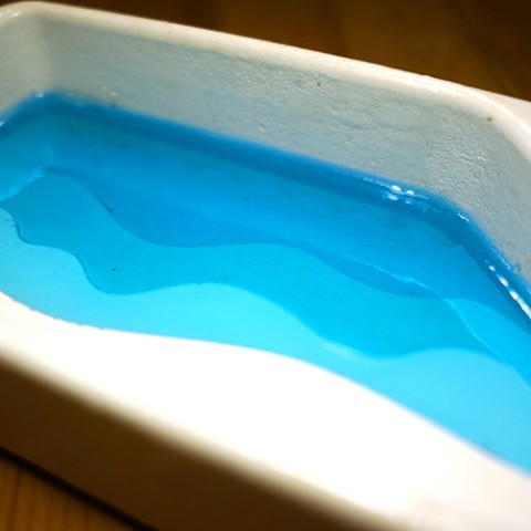 文具トレイにまるでゆっくり動いているかのような寄せては返す波のような穏やかな小さな海辺を表現しました。