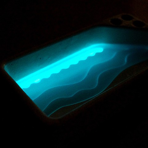 “Beach"は海底に光を溜め込み暗くなると光り輝く発光樹脂を沈めています。