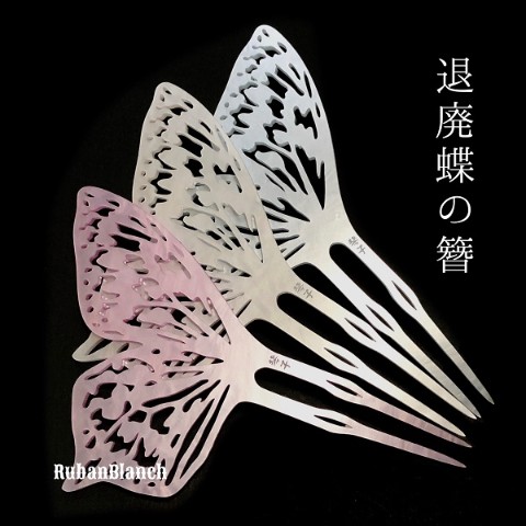 【琴子/Raison d’etre】退廃蝶の透かしかんざし(白蝶貝風/一本挿し)