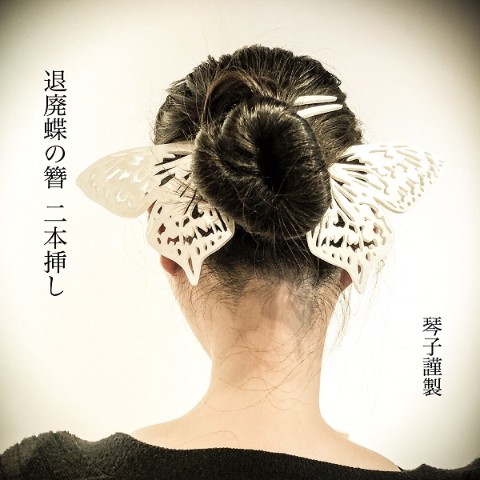 【琴子/Raison d’etre】退廃蝶の透かしかんざし(白蝶貝風/二本挿し)