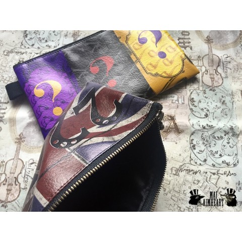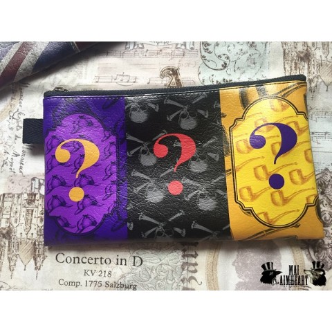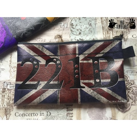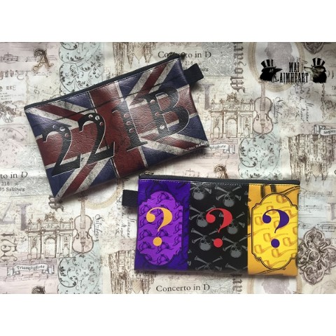 シャーロックホームズをイメージしたイラストとデザインのポーチ。わかる人が見ればピンとくる、男性でも使いやすいデザインにしてみました。